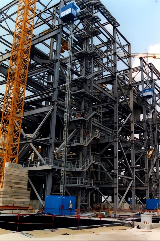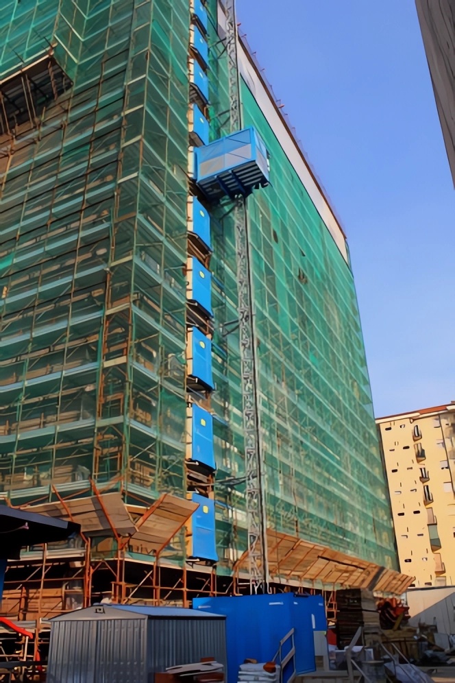 Građevinske dizalice za prevoz ljudi i materijala, sa kabinom koja se vertikalno vodi.